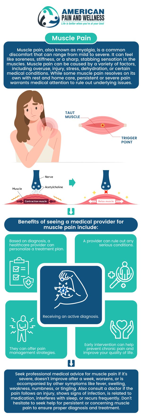 How can you tell if you have nerve pain or muscle pain? In general, muscle pain is typically experienced as a kind of aching or stiffness. If it is caused by injury, strain, or tension, it is usually localized to a particular area and hurts when the muscle is in use. In contrast, nerve pain is more often experienced as a sharp, burning, throbbing, or tingling pain that can occur randomly, whether you are at rest or not. With that said, it is not always apparent based on the symptoms you are experiencing if it is nerve or muscle pain. As such, it is still a good idea to seek medical attention for nerve or muscle pain so that you can receive an accurate diagnosis.
